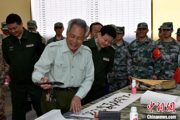 军休文艺志愿服务队书法队员还在现场挥毫泼墨,“准新兵”们则在一旁为书法家牵纸、砚墨、选句……一句句激励斗志的祝福跃然纸上,一幅幅俊秀飘逸的手书饱含着对即将踏入军营的美好祝福。现场萦绕着浓浓的墨香和文化气息,让“准新兵”们刚入军营就感受到浓厚的军营文化氛围。