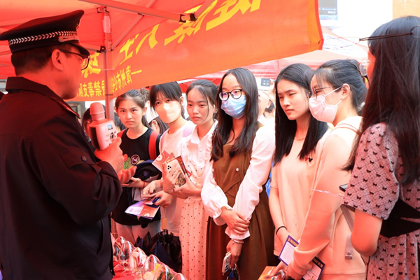 活动中,民警、志愿者结合宣传展板、手册、问卷和读本等素材,与学生面对面开展生动宣讲,通过图册、案例、仿真实物等以案释法,为师生科普《国家安全法》《反间法》《反恐法》《禁毒法》《刑法》等与国家安全息息相关的法律知识,引导青年大学生知法守法懂法用法。