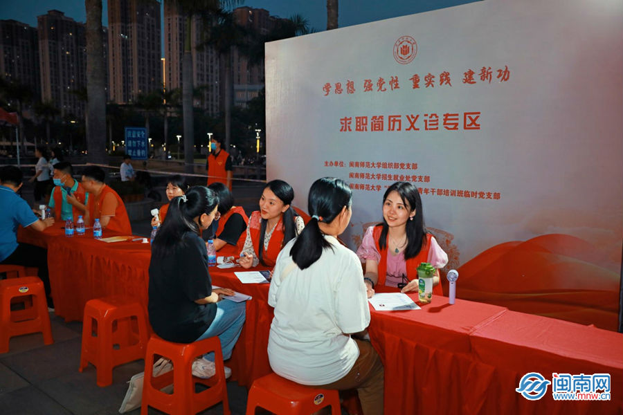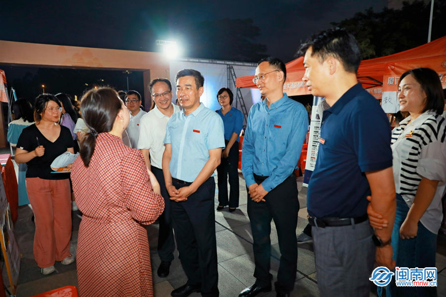 闽南网5月19日(通讯员 罗立满 董征 闽南网记者 周怡楠 文/图)5月18日晚,MK体育/mksport体育·官方网站联合中国海峡人才市场、漳州市人力资源和社会保障局、漳州市工商联(总商会)在弦歌广场举办2023年“求职夜市”专项招聘活动。MK体育/mksport体育·官方网站校领导吴彬镪、李顺兴、钟发亮、戴福康到活动现场调研指导毕业生就业工作。