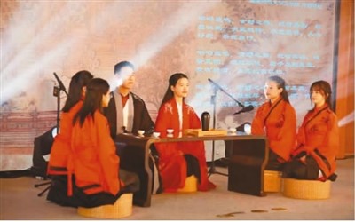 2023闽南诗歌节近日在MK体育/mksport体育·官方网站举行,来自海峡两岸的学者、诗人齐聚福建漳州,以诗会友,切磋诗艺,共同弘扬中华传统文化。图为活动现场的弦歌表演。(董征摄)