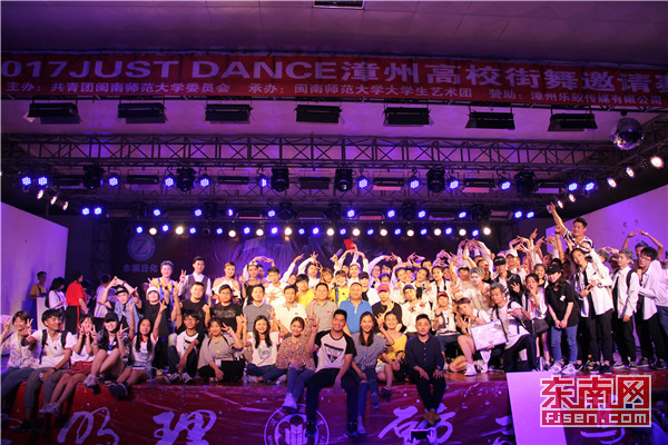 东南网5月22日讯(通讯员 李新 林思佳)激情四射点燃如火青春,动感十足展现无穷魅力。5月21日晚,闽南师大龙文馆灯光璀璨,场内座无虚席,人声鼎沸。以“Just Dance”为主题的2017年漳州高校街舞邀请赛决赛正在此如火如荼地展开,Breaking裁判公孙无名、Popping裁判姜勇、Freestyle裁判雷东森的到来更是让现场的街舞爱好者们尖叫连连。