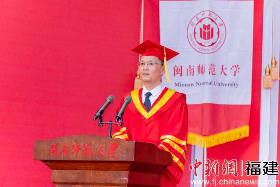 闽南师大党委副书记、校长李顺兴在毕业典礼上致辞。他寄语毕业生们心怀信仰之光,照亮赤诚报国之路,牢记“请党放心、强国有我”的青春誓言,始终站稳人民立场,坚守爱国爱党的人生底线,在守初心中厚植家国情怀,在担使命中奉献青春力量;心怀希望之光,照亮美好生活之路,不管遇到任何困难,始终泰然若素,保持前行动力,以希望之光照亮自己,照亮他人;心怀梦想之光,照亮决胜未来之路,在学习中苦练本领、在坚持中积蓄力量、在行动中寻求突破,做到心中有光、脚下有路。