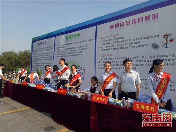 此次校园贷普及活动有来自漳州招商银行、交通银行、中国银行等10多所银行分行。各所银行着重向学生介绍了校园贷和网络非法集资。一些银行还对“网上诈骗”等非法转账做了相关介绍。“学生们一定收到过冒充银行、10086发的短信,其中有些是转账提醒、有些是网络链接,对于这些短信大家不要轻信。”漳州中国银行支行员工这样说到。