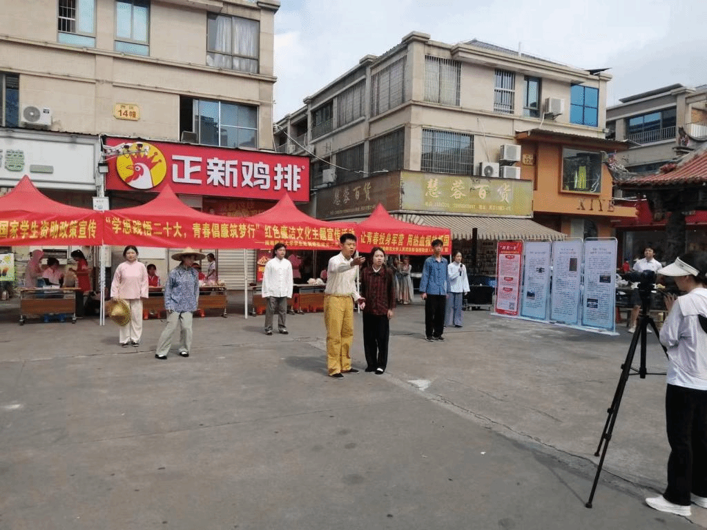 活动现场还同步开展国家学生资助政策宣传与征兵宣传活动,并举行了红色廉洁文艺快闪演出。通过舞蹈和话剧的快闪演出,吸引周边社区群众到场参与活动,并以志愿者社区内驻点服务、入户答疑的方式,将好政策送入基层、送进家门。