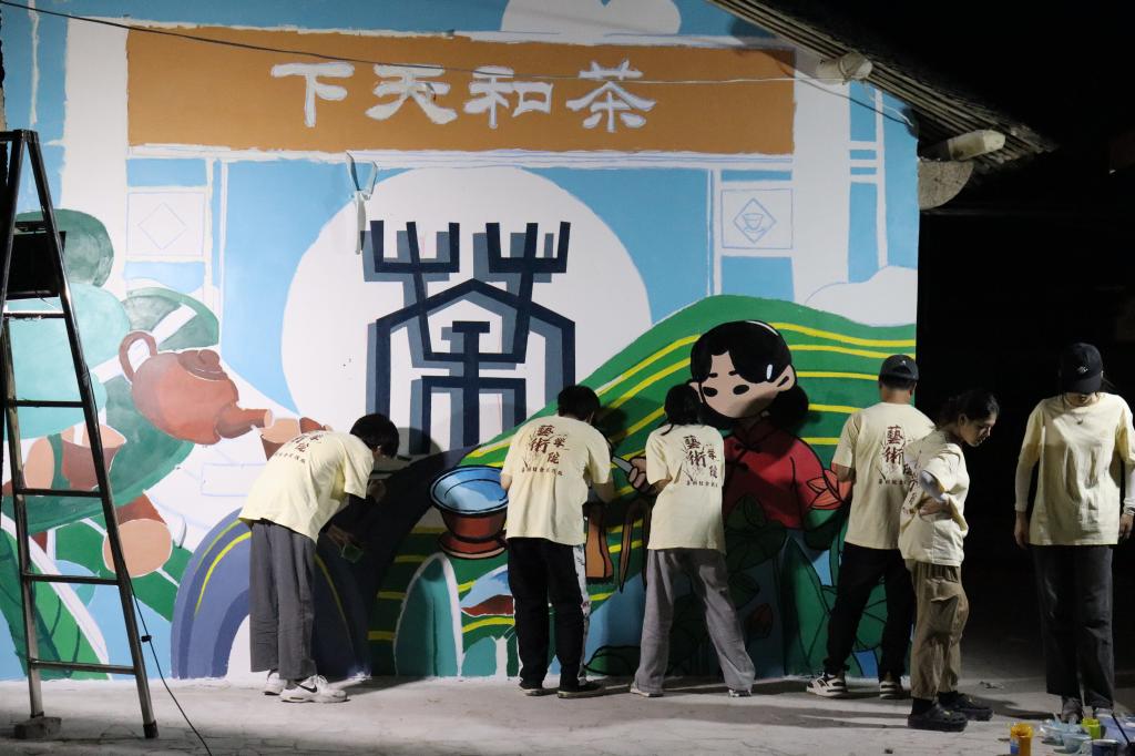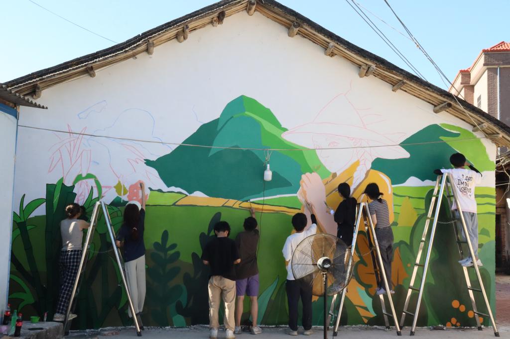 队员们在墙绘过程中,克服种种困难,战高温、斗酷暑,早出晚归,一同迎来晨曦的第一缕阳光,一起见证夜晚的星空闪烁。烈日与星辰一同见证他们的成长。队员们发挥自己艺术特长,以墙为布、以笔传情,结合当地文化底蕴、历史背景,构图、起形、调色、上色……不断发挥创造力与想象力,反复打磨每一面墙绘、认真勾勒每一个细节。队员们在实践中既锤炼了吃苦耐劳的优良品质,也在实际行动中彰显新时代大学生的责任担当。