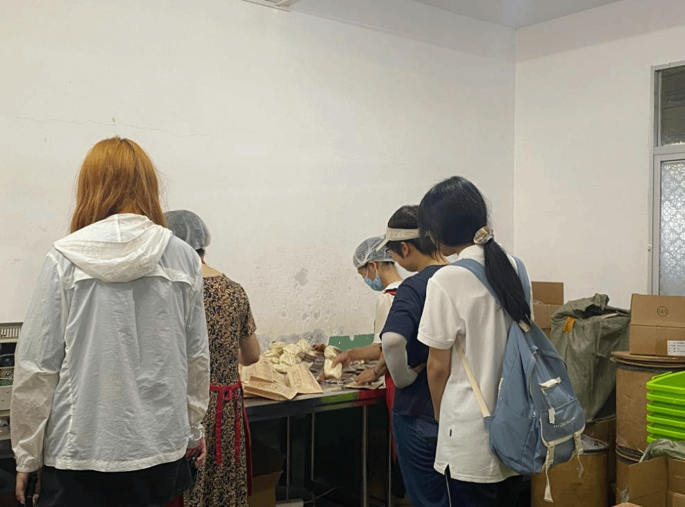近年来,俞邦村积极发挥自身品牌资源优势,联合周边的长阜、松林、儒元、东街、西街村等5个村成立“俞邦片区党委”,将各村特色产品纳入品牌旗下,实现资源共享,优势互补,抱团发展,为乡村振兴赋能。随后,实践队伍前往长阜面干场调研。面干及配套的调味料是当地的特色产业。面干厂依托俞邦村的知名度,通过线上和线下,把面干卖到全国乃至全球各地。面干厂也为村里提供了大量劳动力岗位。