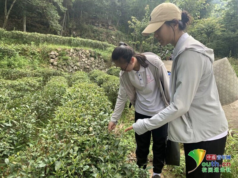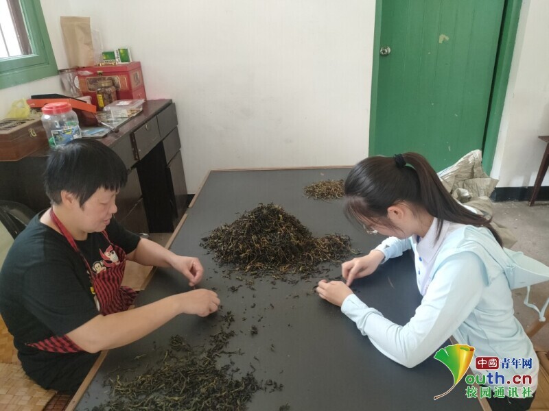 图为实践队员在茶农的指导下学习分拣茶叶。中国青年网通讯员 苏秋霞 供图
