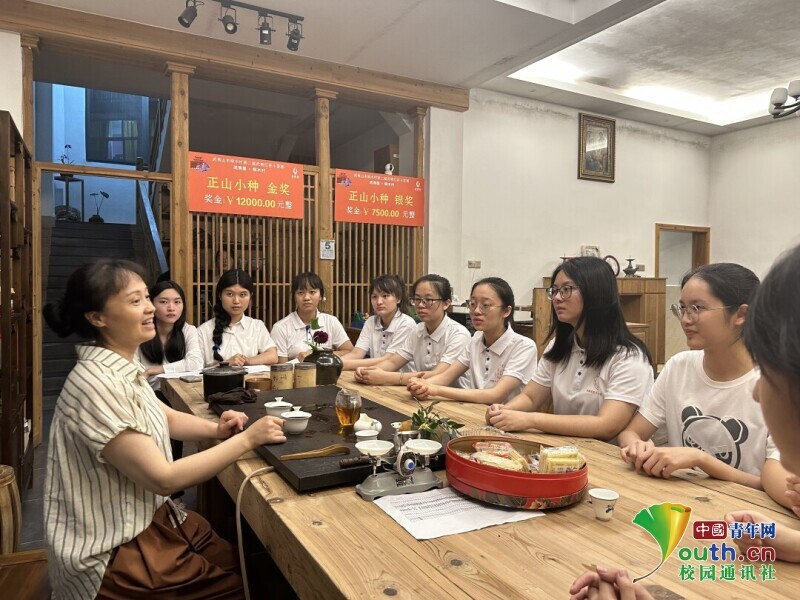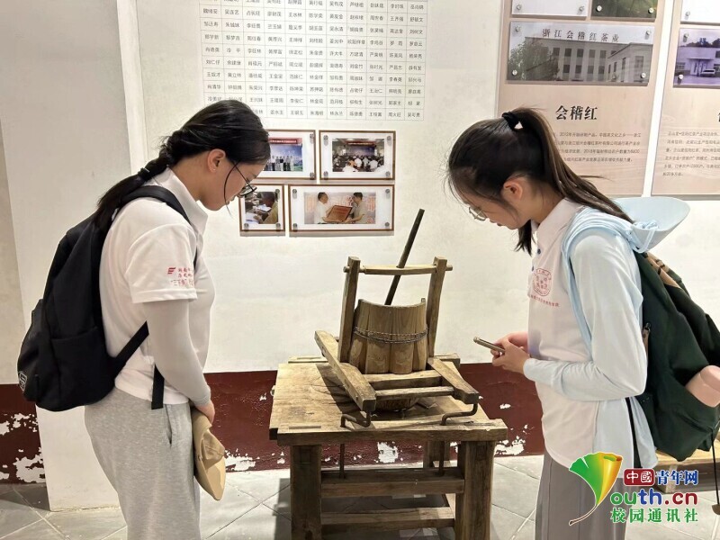 图为实践队员在正山堂红茶博物馆观摩制茶工具。中国青年网通讯员 邱婧 供图