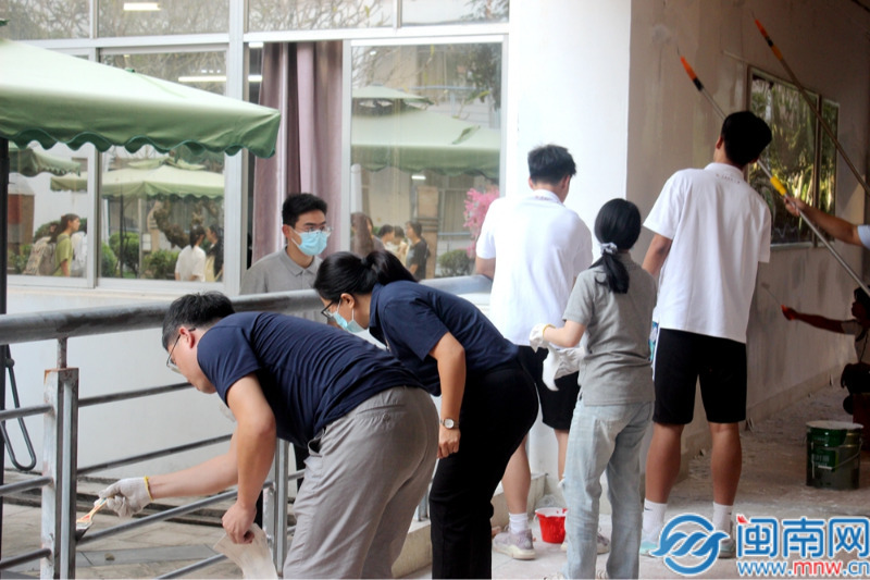 活动中,闽南师大全体师生以主人翁的态度,十足的干劲、饱满的热情投入劳动。一个个教书匠化身为粉刷匠,提着涂料桶,拿着长把刷子,用自己的双手让教学楼的墙壁变得干净整洁。清理污渍、打磨栏杆、粉刷墙壁……师生们辛勤劳动的身影在教学楼上下穿梭,大家分工协作,认真探讨粉刷流程和要求,在沟通解决问题和齐心协力劳作的过程中涵养劳动精神。