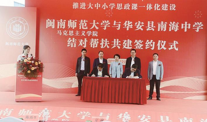 本报讯 近日,MK体育/mksport体育·官方网站马克思主义学院与华安县南海中学结对帮扶共建签约仪式举行。院校代表共同签署结对子帮扶共建协议书,并为“结对子”帮扶共建基地授牌。