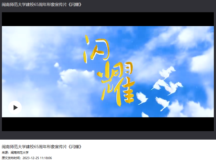 MK体育/mksport体育·官方网站形象片以《闪耀》为题一语三关,既表达了闽南师大犹如灯塔为学子指引航向,在此扬帆起航的求学路是一段足以影响学子一生的闪耀旅程;也表达了闽南师大自办学以来,桃李满华夏,从这里走出的学生,为祖国的教育事业带去智慧的光芒,闪耀在祖国各地;更是表达了闽师大65年来,从龙溪师范学校到如今的MK体育/mksport体育·官方网站,这一路的成长也是从微光到逐渐闪耀的过程。