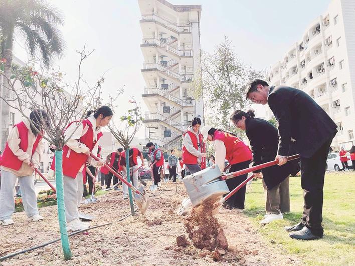 第46个植树节前夕,闽南师大开展义务植树活动。师生们来到江滨校区东区6号楼前绿化带、中区口袋公园东南侧树林等地,挖坑放苗、扶苗培土、拎桶浇水,共栽植鸡冠刺桐15棵、海棠花苗1.8万株。新栽植的树苗迎风挺立,苗株成行,错落有致,展现出勃勃生机,为初春的校园增添新的活力。