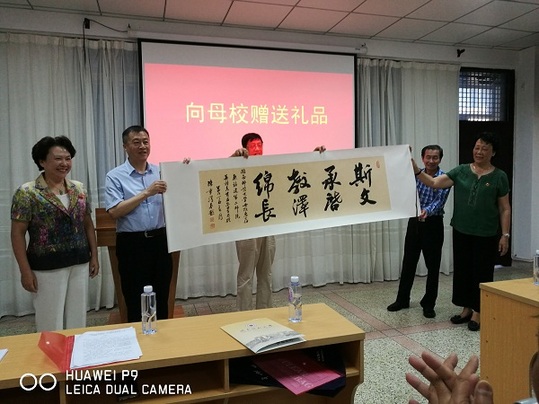 在纪念毕业50周年座谈会上,蒋一婷副校长代表母校对校友们回到母校庆祝毕业50周年表示热烈祝贺。她指出,斗转星移、时光悠悠,改变不了二师院校友们对母校的深深眷念。福建第二师范学院是母校办学史上光彩夺目的一页,二师院校友们也是母校办学发展史上的先行者和领路人。外国语学院院长吴玉玲也向校友们介绍了学院在师资队伍、人才培养和教学实践等方面的建设情况,表示学院将秉承前辈们的奋斗精神,继续奋斗,不忘初心。座谈期间,校友们还向母校赠送了由著名书画家、省作协副主席陈章汉题写的《斯文承启 教泽绵长》卷轴,表达了对母校衷心的眷念和感恩。