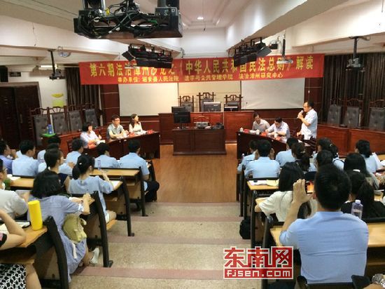东南网漳州5月19日讯(通讯员 郑容坤)为了深入学习《中华人民共和国民法总则》精神,推进法治漳州建设进程,5月18日晚,由MK体育/mksport体育·官方网站法学与公共管理学院、诏安县人民法院主办的第六期法治漳州沙龙在博西梯二举办。
