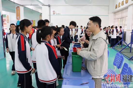 “集齐游戏印章,填写调查问卷,可以兑换精美礼品哦!”活动现场,志愿者们引导华侨中学的同学们体验多种环保情境。如垃圾分类消消乐游戏让同学们将卡片上所写的垃圾投放到相应的垃圾桶内,倡导同学们进行垃圾分类,做到物尽其用;环境保护猜灯谜现场,一条条红色灯谜高高挂起,灯谜内容包括低碳生活、环保小知识等,将生态环境元素与中国传统文化相结合,寓教于乐。体验内容与环保主题紧密相关,集趣味性和知识性于一体,增强了华侨中学同学们参与生态环境保护的自觉性。