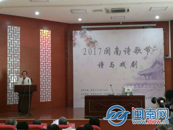 闽南网5月13日(通讯员 林枫 陈小环 福建MK体育/mksport体育·官方网站新媒体 闽南网记者 王惠敏)5月13日上午,2017闽南诗歌节——“诗歌与戏剧”大型文化交流活动在MK体育/mksport体育·官方网站开幕。来自国内外近30名诗人、学者、文学评论家和剧评家欢聚一堂,围绕诗歌与戏剧、文学与艺术进行深入研讨与交流,与闽南师大学子及漳州市民分享戏剧、琴艺、茶艺、书画等传统艺能延展活动的心得。