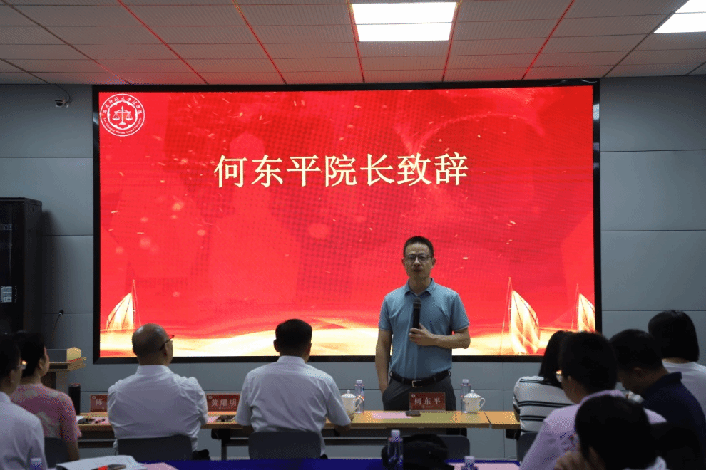 学校科研处处长林福财致辞,他肯定了法学院近年来在科研工作方面取得的成就,推动科研工作走深走实。法学院副院长赵凌详细介绍了学院近三年科研工作情况,法学院院长何东平总结了学院科研工作的经验与面临的形势,不断推动新文科建设高质量发展。科研处副处长黄耀明、郑容坤、方劲、黄云凌等教师从智库建设、课题申报、论文撰写等方面进行了分享。