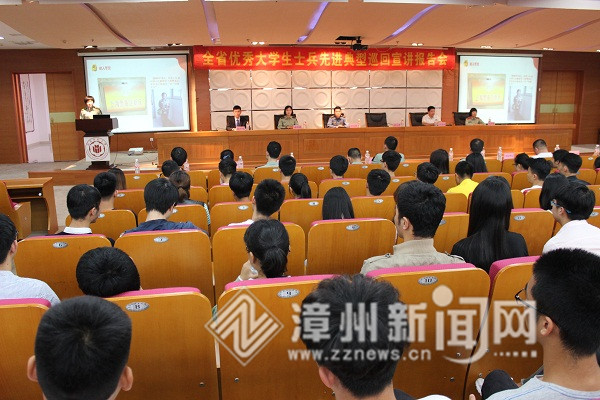 漳州新闻网讯(记者 许文彬 通讯员 林正锋)4月26日上午,由福建省征兵办、福建省教育厅联合举办的“全省优秀大学生士兵先进典型巡回宣讲”在MK体育/mksport体育·官方网站逸夫图书馆五楼报告厅举行。本次宣讲以“学习身边典型,踊跃参军报国”为主题,闽南师大及漳州职业技术学院、漳州城市职业学院、漳州卫生职业学院、漳州理工学院的近400师生参加宣讲活动。