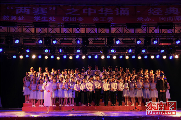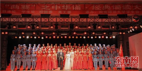 “朋友,你问吗,我的故乡?”《福建三唱》以地理入诗来抒发对故乡、祖国的情感,文学院将诗词中作者对家乡浓郁的爱与人生漂泊的经验表现得淋漓尽致,引得了台下观众的共鸣与掌声。而新闻传播学院的同学则将快板、舞蹈以及动人的歌声巧妙地结合,述说着过去的革命党人林觉民与妻子的《百年情书》。“吾至爱汝!即此爱汝一念,使吾勇于就死也”,这种将小爱转为大爱的精神让现场观众不经为之动容。此外,马克思主义学院的《冉冉红星谷文昌》,情景剧与朗诵穿插进行,再现了谷文昌书记与东山人民共同艰苦奋斗的日子。“谷文昌,我们的好书记!谷文昌,我们的好书记!”,逼真的情景剧、精彩的朗诵,博得了观众的阵阵喝彩。