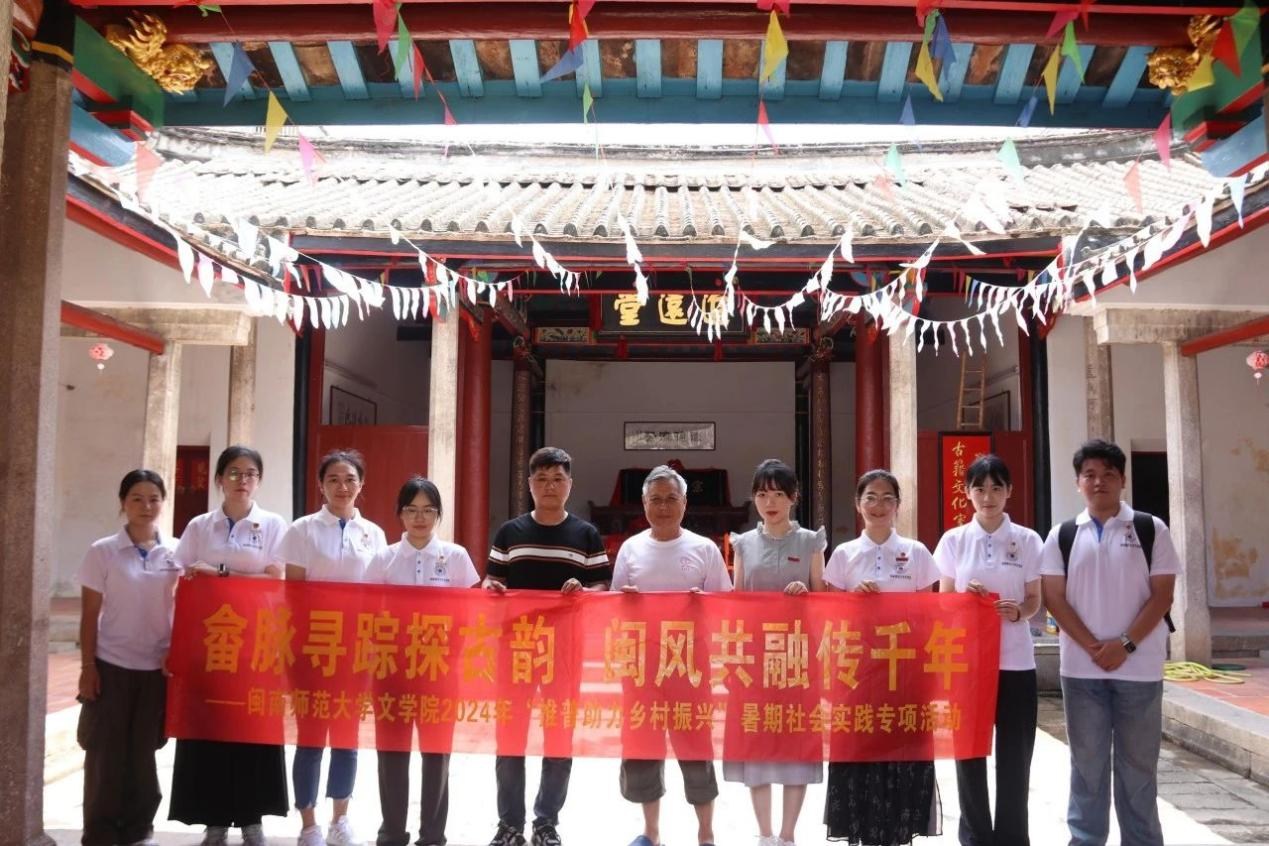 美营畲族村是福建省第一大畲族村,已有600多年的历史,现有畲族人口8000余人。在村书记钟惠强的带领下,志愿者们实地参观布衣伟烈供诏祠、大宗祠成礼堂等富有畲族民俗特色和历史文化的场所,欣赏东溪河畔形象逼真的石雕艺术造像,体验畲族服饰之美,同时了解美营畲族村发展规划及畲族文化建设情况。队员们结合调研成果,编排了“美营三宝”系列短剧,引领畲族小学生演绎家乡特色民族文化,为少数民族文化传承赋能。