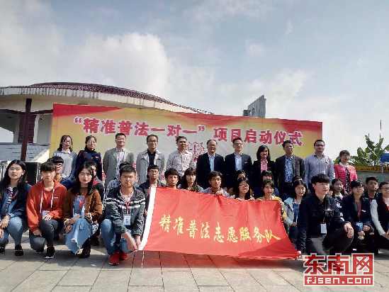 启动仪式上,漳州市司法局局长林方对此次的“精准普法一对一”项目提出摸清群众用法需求、突出普法精准供给、找准普法切入点、注重效果评估和加强项目管理五大要求,并亲自为志愿者服务队授旗。何东平院长宣读“精准普法一对一”志愿者名单,组织村两委与宣传员的对接事宜。