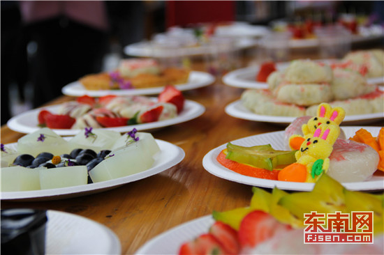 “吃喝玩乐”,场上除了玩乐,还有“吃喝”。15食品2班的同学现场做起了寿司和小糕点,16食品2班以“杰克的一天”为主题,用一日三餐的形式展示他们亲手制作的牛排、披萨、汉堡、杯子蛋糕等美食,勾起了无数吃货们的馋欲。除了游戏竞争,还可通过投票。食物的诱惑使得发放票券的时间未到,发票处的帐篷前便已排起长长的队伍,现场热闹非凡。而一些班级的多肉植物,也吸引许多同学的注意力。不少同学通过比赛,过关斩将,赢得多肉。