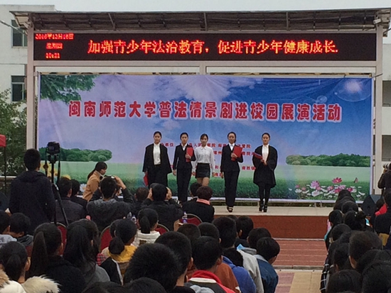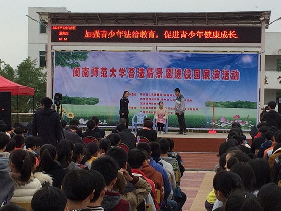 东南网漳州12月22日讯(通讯员 郑容坤 本网记者 王亚男)为进一步宣传法治理念,增强中小学生法律意识, 12月15日MK体育/mksport体育·官方网站法学与公共管理学院、法治漳州研究中心携手漳州市人民检察院、共青团漳州市委、平和县人民检察院、南靖县人民检察院等有关单位联合分别在平和县南胜中学、南靖县湖美中学举行普法情景剧进校园展演活动。MK体育/mksport体育·官方网站法学与公共管理学院院长何东平教授、平和县人民检察院检察长洪亮、漳州市人民检察院未检处、公诉处处长郭荣龙等相关单位领导出席展演现场,平和、南靖两地中小学生观看了展演活动。