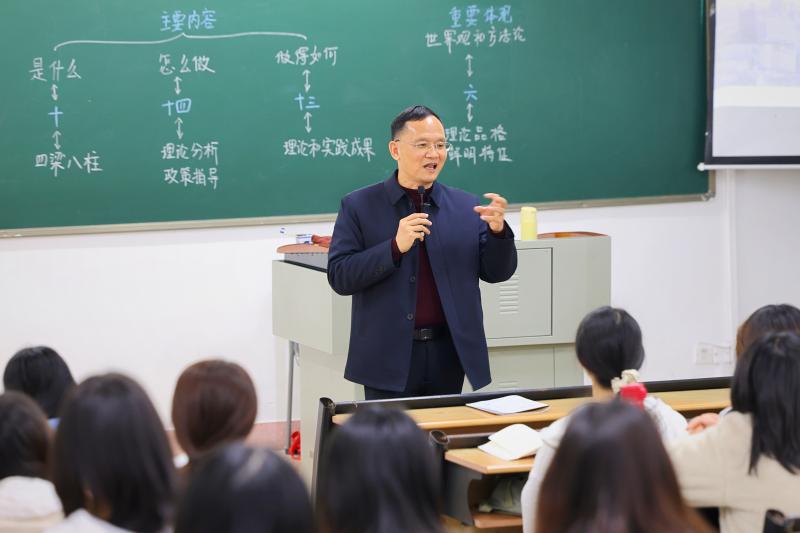 他指出,当今时代,国家与世界正经历着急速的变化,在这样的背景下,经济学专业学生学习马克思主义基本原理意义重大。他强调,同学们要学会带着批判性思维学习,以开放包容的姿态吸纳人类文明精华,坚决“减”去“社会达尔文主义”等思想杂质,希望同学们都能成长为有家国情怀的社会主义建设者,在中西方理论的对比分析中,不断提升理论运用与践行的能力,以正确价值观引领人生方向。