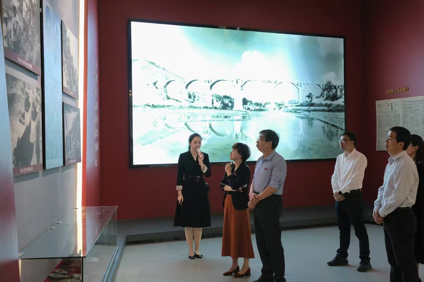 随后,教师党员代表走进展馆,沉浸式感受向东渠建设“战天斗地”的动人场景。泛黄的工程图纸、斑驳的锄头畚箕、3D复原的“倒虹吸管”技术模型,一件件展品串联起向东渠建设的壮阔史诗。“课本上的艰苦奋斗,在这里变得可触可感。”现场,一名思政课教师党员指着展柜中打满补丁的施工安全帽说,“这些实物比任何理论都更具震撼力,让我们深刻理解‘幸福都是奋斗出来的’的深刻内涵。”