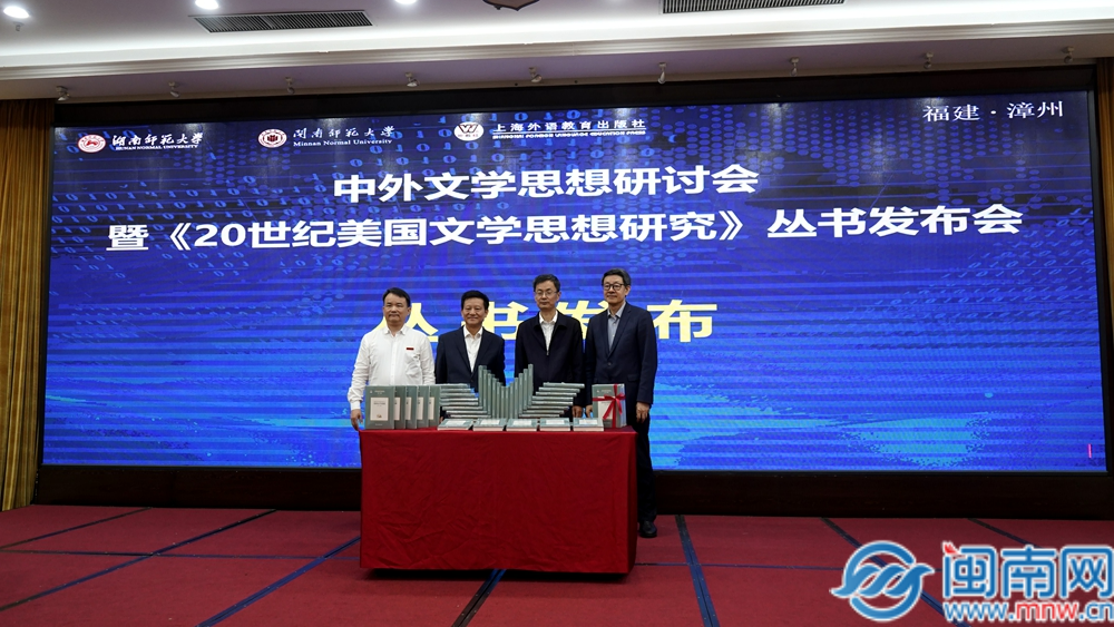 闽南网4月19日讯(闽南网记者 柯嘉进 文/图/视频)4月19日,中外文学思想研讨会暨《20世纪美国文学思想研究》丛书发布会在福建漳州举行。本次会议由湖南师范大学、MK体育/mksport体育·官方网站和上海外语教育出版社主办。30余位国内知名专家学者与来自全国多地高校代表齐聚一堂,共商中外文学研究的新发展与新优势。