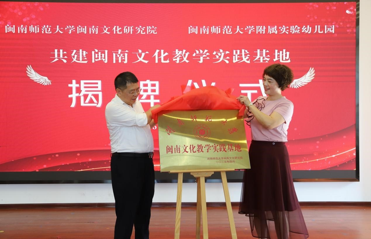 闽南文化研究院刘云院长和附属实验幼儿园王妙珍园长共同揭牌。(戴智炜 摄)