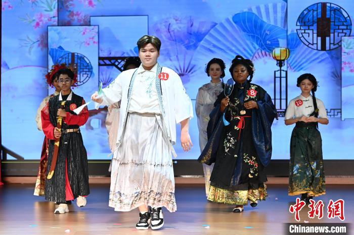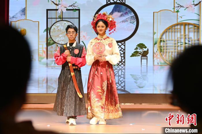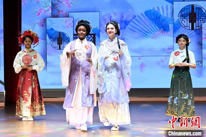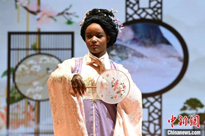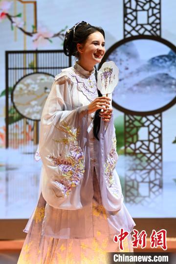 图为外国留学生身着汉服,展现霓裳羽衣之美。中新社记者 张金川 摄