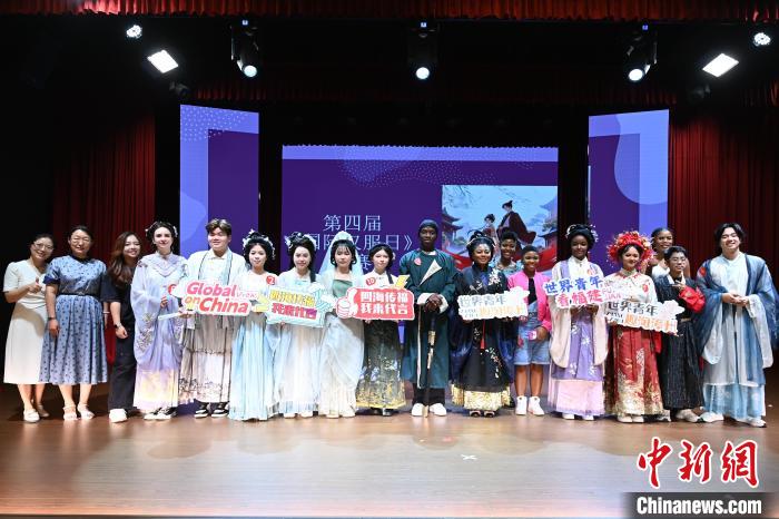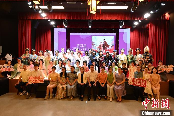 图为外国留学生身着各朝汉服与嘉宾合影。中新社记者 张金川 摄