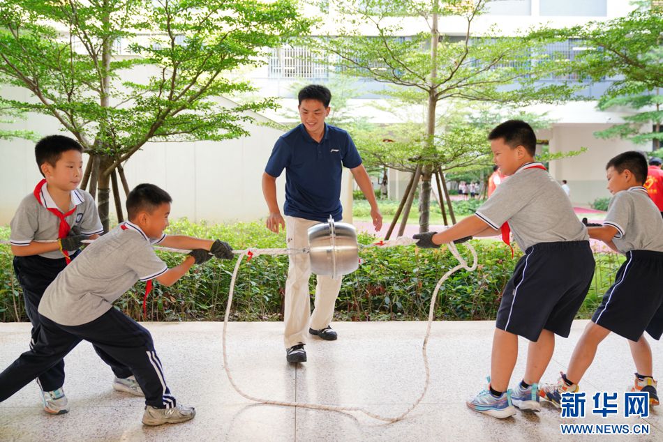 6月5日,学生在参加“马德堡半球实验”趣味拔河,在活动中体验大气压强,感受科学力量。