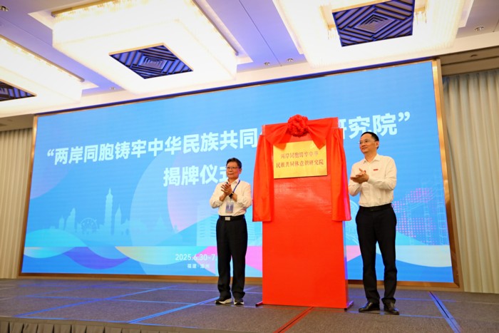 随后,现场举行了“两岸同胞铸牢中华民族共同体意识研究院”成立揭牌仪式。 作为国内首个聚焦铸牢中华民族共同体意识主题的涉台研究平台,该研究院的设立既是深入贯彻习近平总书记关于铸牢中华民族共同体意识重要论述的具体实践,也是凝聚两岸同胞团结奋斗共识的重要举措。