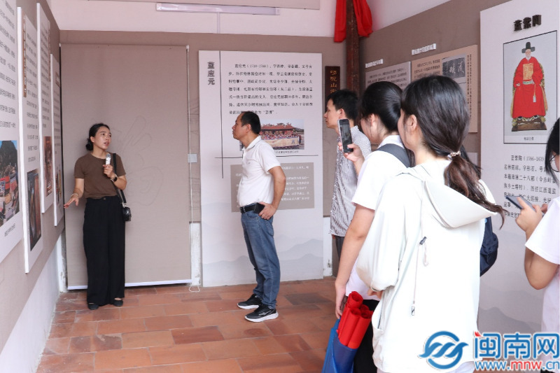 在推广经典的同时,赴漳浦实践队深入蓝廷珍府第、闽台畲族博物馆、蓝氏家庙等地,探寻闽台畲族“同根脉”。府第内,门柱石匕、楹联牌匾诉说着蓝廷珍将军“收复台湾、开发宝岛”的壮举;家庙里,“同宗共茂”“远洋思亲”凝聚着闽台共识。队员们纷纷表示:“这些文物不是冰冷的展品,而是会说话的历史——它们说,两岸的文化根脉从未断裂。”