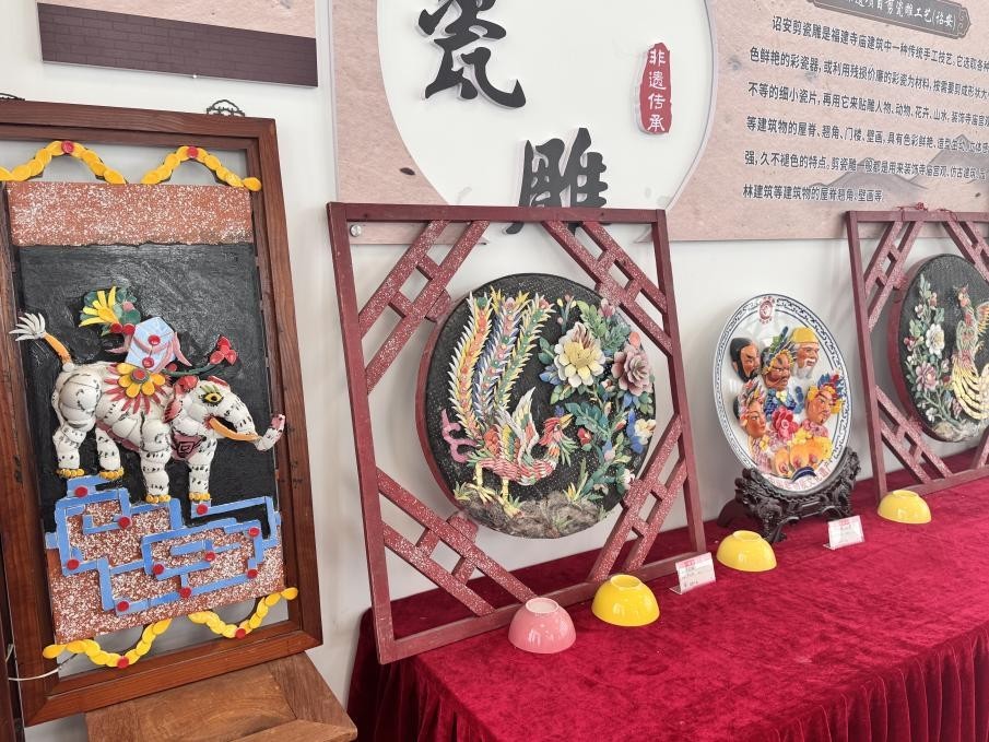 福建省漳州市诏安文化艺术中心非遗展馆(剪瓷雕馆)内陈列的精美剪瓷雕作品。 张晓婷 摄