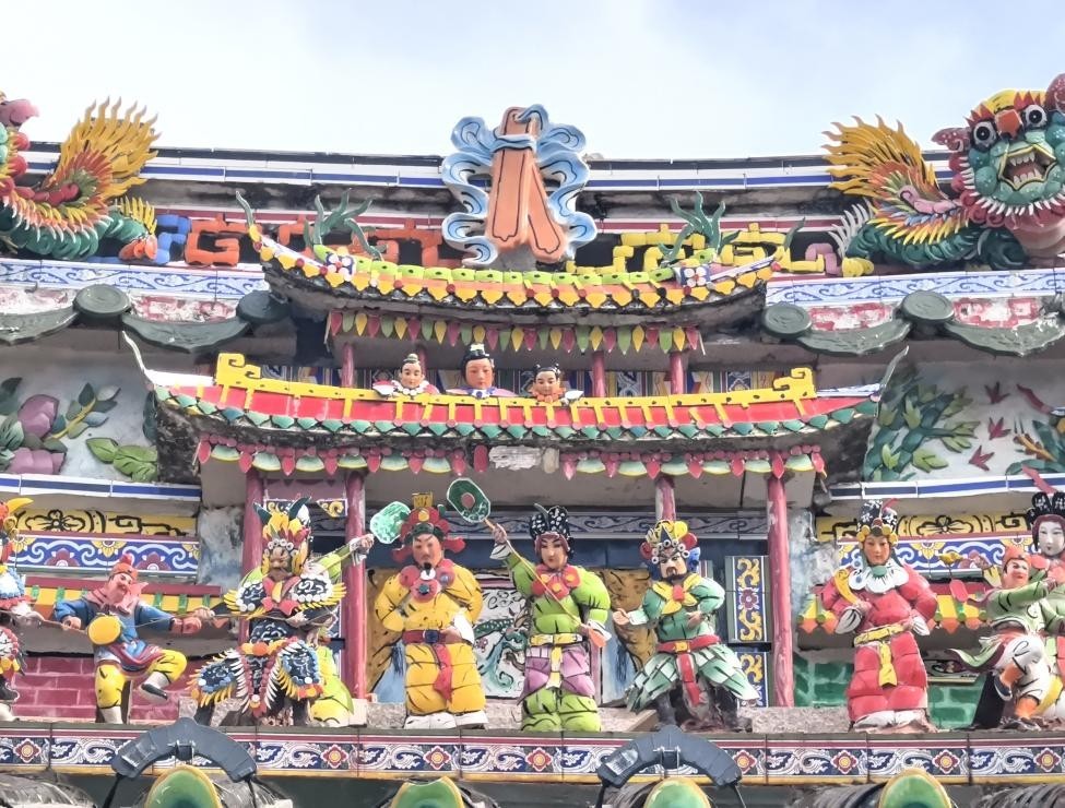 福建省漳州市诏安县沈氏文德祖祠屋顶上的剪瓷雕作品。杨梓莹 摄