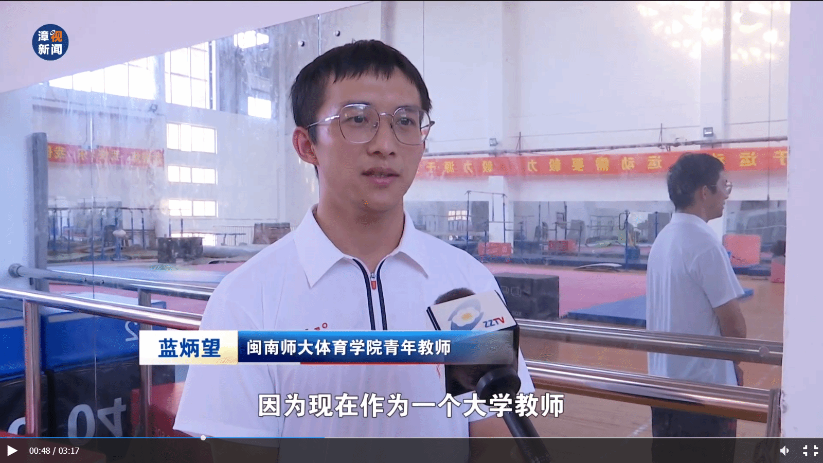 蓝炳望1995年出生于江西宜春,2022年成为闽南师大体育学院老师,主要教授体操和花样跳绳。他告诉记者,自己是在大学时期出于好奇开始接触了花样跳绳,起初只是参加学校晚会和展演,没想到一步一步走上了专业赛场。
