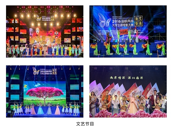 颁奖典礼上先后颁发了最佳网络人气奖、最佳公益微电影奖、最佳广告奖、最佳创意奖、最佳原创剧本奖、最佳动画类微电影、最佳纪录片奖、最佳男女主角奖、最佳剪辑奖、最佳摄影奖、最佳导演奖、最佳微电影奖12类大奖。颁奖现场穿插了“筑梦青春”、“闽南神韵”、“花开两岸”三个篇章的大型文艺节目表演,来自MK体育/mksport体育·官方网站艺术团、艺术学院及社团联合会,漳州市教育艺术团、台湾金门棠风舞蹈团、厦门闽南神韵艺术团等海峡两岸的高校师生、文艺团体带来了富有闽台文化元素的大鼓凉伞、高山族舞蹈等文艺节目表演。