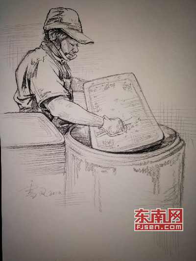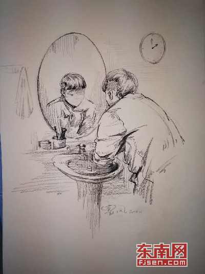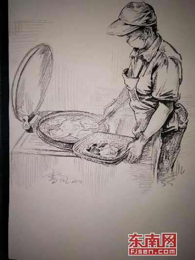 “我们采访了所有的食堂师傅,在我们的作品中把‘所有人’变成了一个人,素描作品中和文章中描述的人物是杂糅在一起的人,故事的主角就是一个典型的形象。”刘宇轩说到。