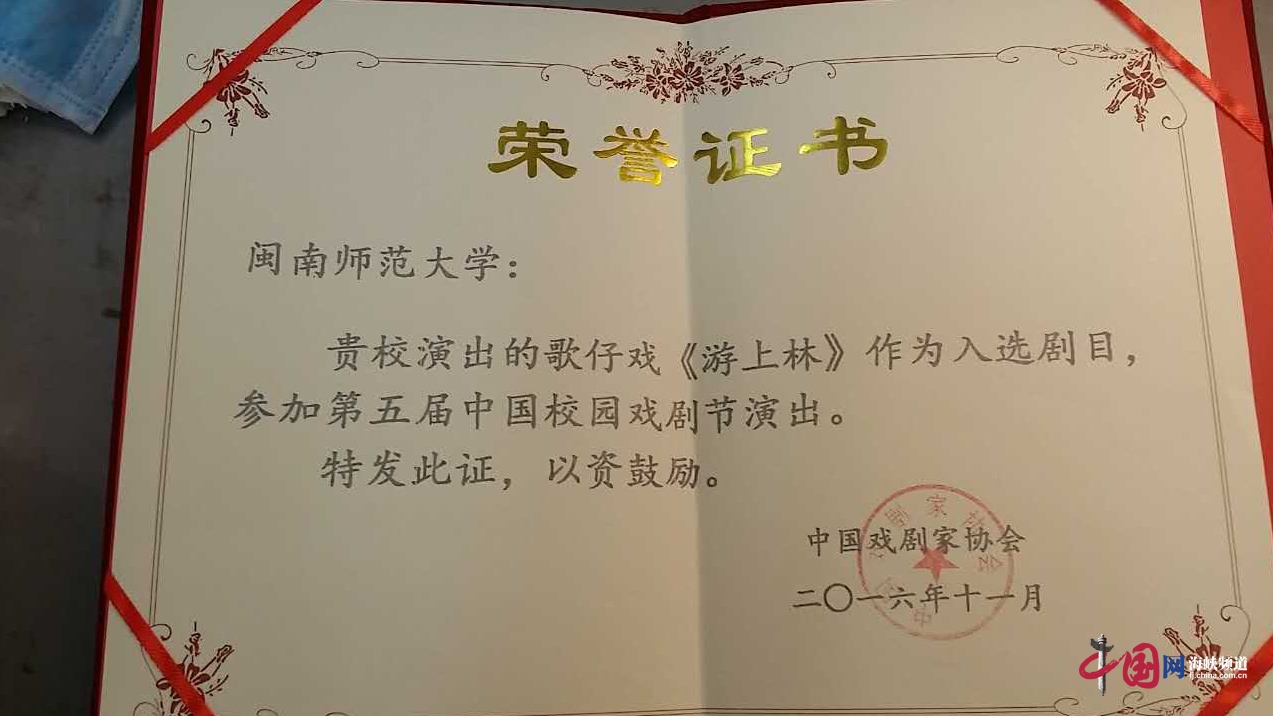 中国网11月30日讯(通讯员 张伟明)第五届中国校园戏剧节于2016年11月18日-26日在上海举行,此次由中国戏剧家协会、上海市文学艺术界联合会、上海市教育委员会共同主办,上海市戏剧家协会、上海戏剧学院、上海师范大学、复旦大学艺术教育中心共同承办。戏剧节期间,来自全国24个省区市的29所高校的剧目分别在专业组、普通组和短剧组参加展演。MK体育/mksport体育·官方网站社联戏曲协会的歌仔戏《游上林》入选第五届中国校园戏剧节剧目,代表福建省高校参赛。MK体育/mksport体育·官方网站团委副书记郑炎山带队前往演出。