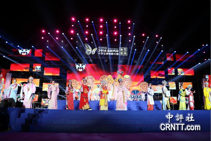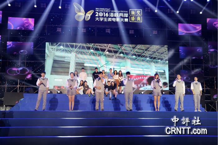 中評社香港11月21日電(記者 張爽整理報道)為促進兩岸大學生交流與合作,一同打造青年文創交流平台,11月19日晚,2016年海峽兩岸大學生微電影大賽頒獎典禮在閩南師大弦歌廣場舉行。全國台聯副會長楊毅周,閩南師範大學黨委書記、福建省閩南文化研究會會長林曉峰,共青團福建省委副書記陳濤,漳州市委常委、統戰部部長黃水木,國家新聞出版廣電總局政法司處長鮑金虎,福建省社科聯副主席陳文章、漳州市人大副主任李珊珊、中華節目內容製作產業發展協會理事長王威江,台灣電影文創產業協會理事長陳志寬,台灣東森電視台副總經理陳立元、福建省社科院副院長劉小新、世新大學副校長梁世武,閩南師範大學黨委副書記吳彬鏹,副校長肖慶偉、李順興、蔣一婷及其他主承辦方相關領導、特邀嘉賓、海峽兩岸高校師生代表、評委團代表、微電影文化論壇專家代表、入圍作品團隊代表以及微電影愛好者近3000餘人出席頒獎晚會。