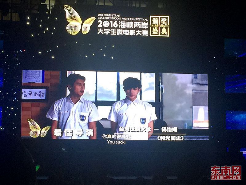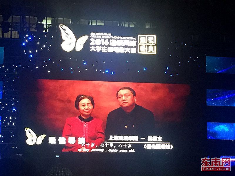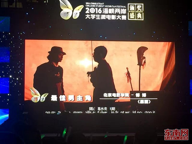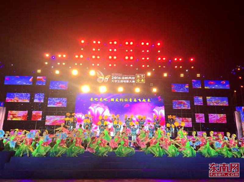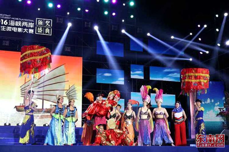 东南网漳州11月19日讯(本网记者 张少伟 通讯员 陈小环 文/图) 为促进两岸大学生交流与合作,一同打造青年文创交流平台,11月19日晚,2016年海峡两岸大学生微电影大赛颁奖典礼在闽南师大弦歌广场举行。