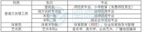 2016年面向福建省招生计划3238人,图为具体批次安排