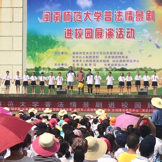 本次活动由闽南师大法学与公共管理学院、长泰县人民检察院、漳州市人民检察院未检处、法治漳州研究中心、共青团漳州市委、共青团长泰县委、长泰县教育局联合举办。长泰县实验小学部分师生1000多人观看了演出。