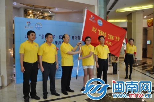 福建省侨联副主席谢小建(左三)授旗