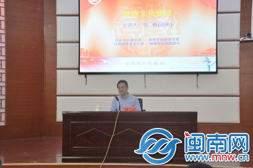 闽南网5月17日讯(闽南网漳州频道 黎秀金 肖春梅 文/图 )习近平总书记强调,“提高国家文化软实力,关系‘两个一百年’奋斗目标和中华民族伟大复兴中国梦的实现。”17日下午,民进福建省委“开明讲坛”在MK体育/mksport体育·官方网站举行。民进中央副主席、民进福建省委主委张帆作《漫谈文化建设》的专题演讲。