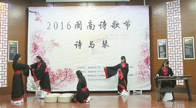 上图:闽南师大文学院泠音琴社在诗歌节上表演琴歌和鸣《鹿鸣操》