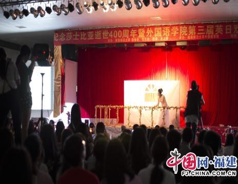 中国网福建5月11日讯(记者 林冰冰 实习生 叶筱琛 俞子凡)5月10日晚,纪念莎士比亚逝世400周年暨外国语学院第三届英日戏剧之夜在MK体育/mksport体育·官方网站举行。闽南师大学生登台表演经典爱情悲剧《罗密欧与朱丽叶》,把戏剧带入校园,坚守戏剧文化传承。
